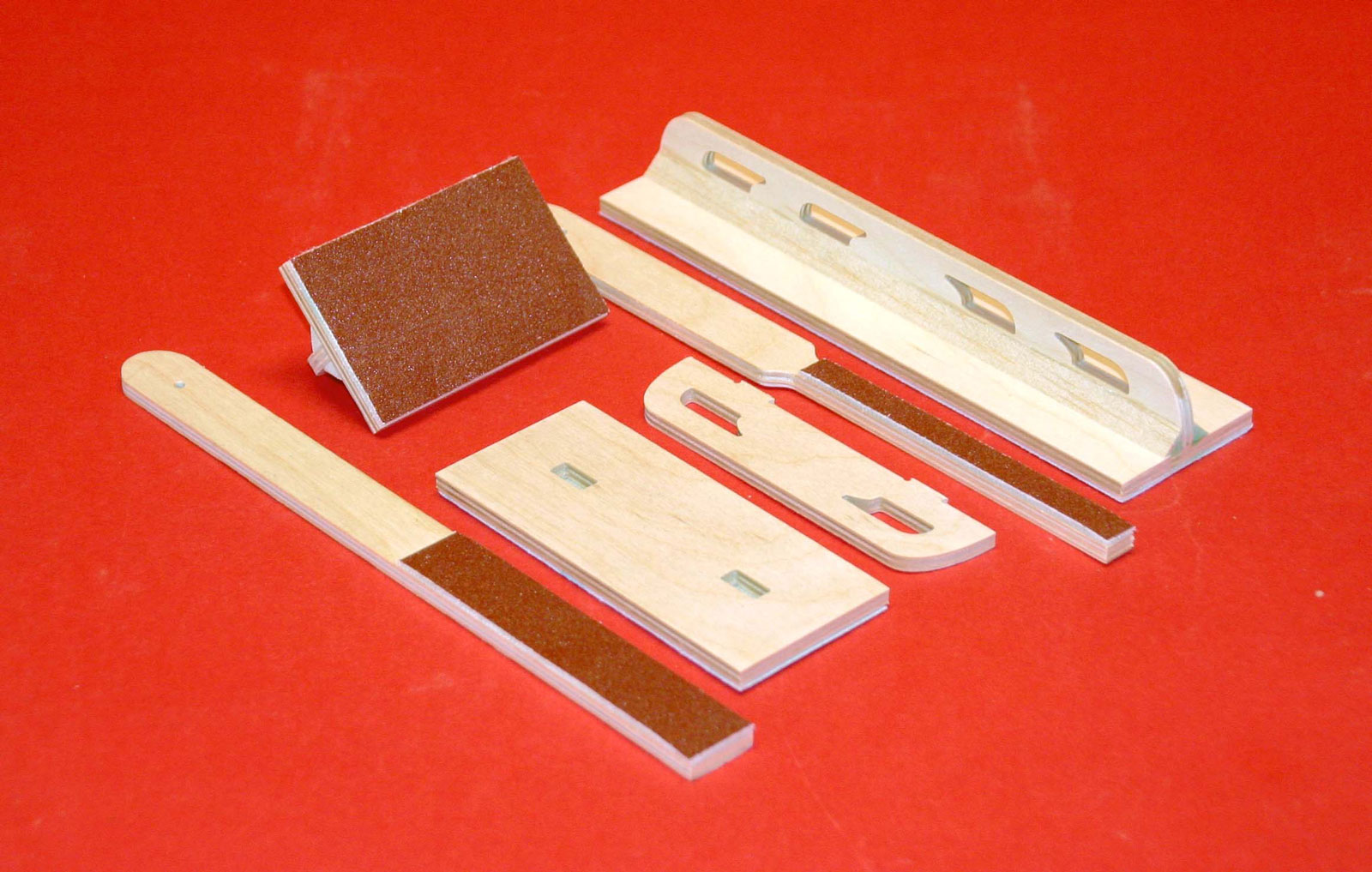 Handschleifset für kleine bis mittelgroße Flächen, Schleifpapier kletthaftend Körnung120, es kann auch jedes andere kletthaftende Schleifpapier mit feinerer Körnung verwendet werden.